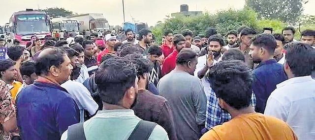 The passengers, opposing the drivers’ sudden decision to suspend services, demanded that they either refund the ticket fare or drop them at their destinations. Following an hour of heated arguments with the passengers, the drivers resumed operating the buses towards Kerala from Walayar around 7.30 am.