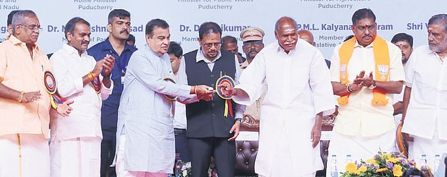 The minister dedicated the 38 km four-lane Puducherry–Poondiyankuppam section of NH-32, built for Rs 1,588 crore to the nation. He also laid the foundation stone for a 4 km elevated corridor between Indira Gandhi Square and Rajiv Gandhi Square on NH-32 at an outlay of Rs 436 crore.