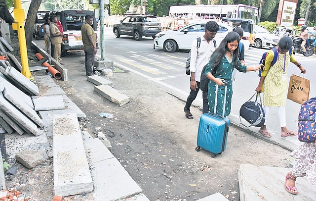 Commuters and pedestrians said the footpaths near the Cancer Institute and IIT-Madras are already not enough to handle the footfall, forcing patients and visitors to walk along the road.