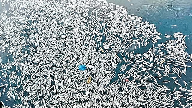SALEM: Thousands of fish were found dead and floating in the 16-Gate canal of Mettur Dam in Salem on Wednesday, causing concern among residents and local fishermen. The incident occurred after the release of surplus water through the canal was stopped earlier this week, leaving water stagnant along the stretch.