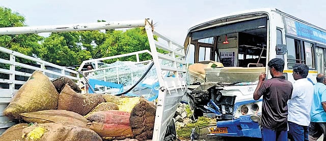 According to the Chengam police, the accident happened at Manmalai within the Chengam police station limits in the morning. The government bus, carrying 46 passengers, was going from Bengaluru to Tiruvannamalai and the pickup van was transporting flowers. The police said the accident happened when the bus tried to overtake another bus and collided with the van coming from the opposite direction.