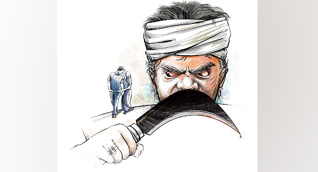 The victim, identified as K Vairamuthu, was returning home after work when he was hacked with machetes allegedly by K Gunal and K Gugan — brothers of K Malini (26) of Adiyamangalam — and four others.