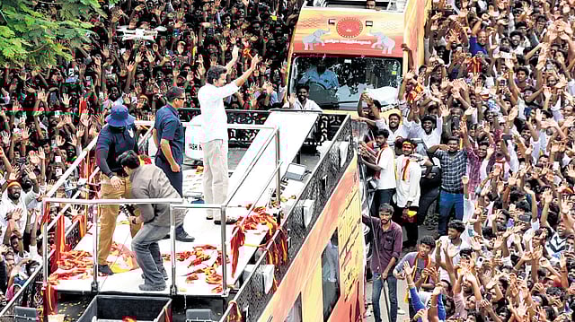 When the massive crowds replied with high-decibel chants of "Vijay," it was seen as a pledge to vote for the TVK and the TVK chief profusely thanked the people. Vijay said TVK's objective is to usher in a "true democracy, one that has a conscience."