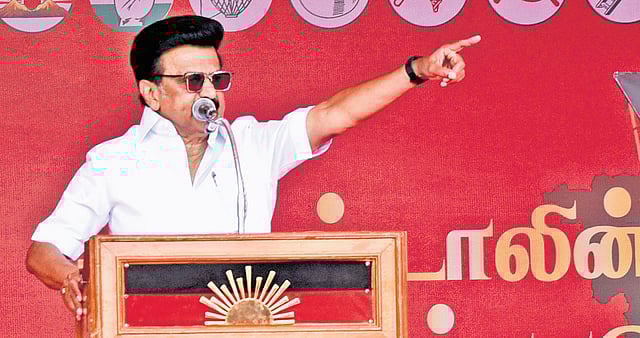Referring to a recent controversy in Madurai, the CM said, “At a BJP rally, a cut-out of Periyar E V Ramasamy was removed at their behest. This shows the subservience of AIADMK.”