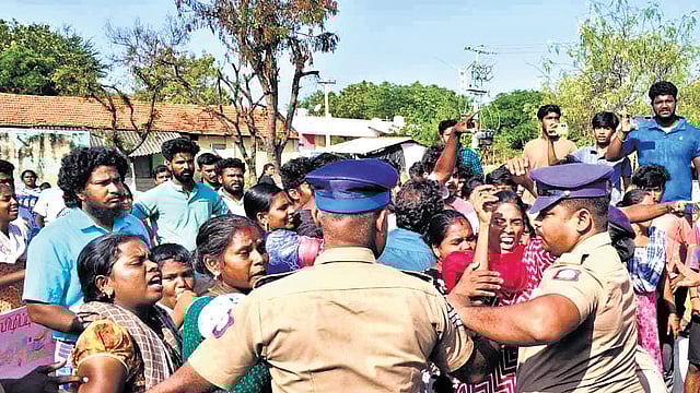 Meanwhile, Kulathuvaipatti residents dumped gravelled earth (‘saral man’) to revamp the pathway on Friday evening. On Saturday morning, inmates of the centre gathered on the road and stopped the work, leading to an altercation between the two sides. Sources said people on both sides pelted each other with stones.