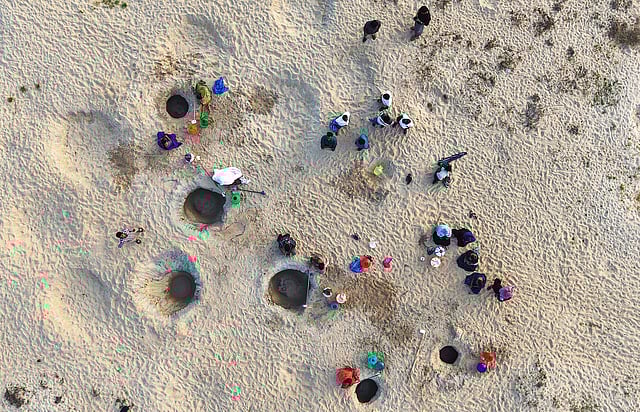 PUDUKKOTTAI: Amid soaring mercury levels, women from the coastal village of R Pudhupattinam carry on with their routine of walking over two kilometres on hot sand with bright plastic pots stacked on their heads and a ladle, fighting the blazing sun across a broken bridge to fetch drinking water from hand-dug pits.