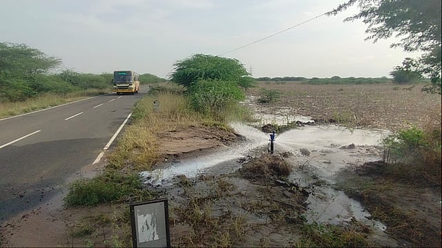 "Several lakh litres of potable water is flowing on the road and into agricultural fields, where it has accumulated like ponds", said K Kannan from Kamudhi.