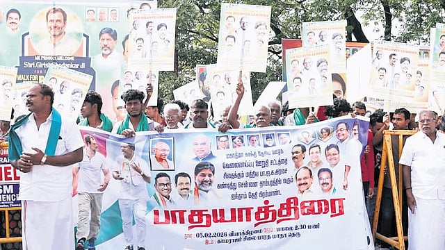 AICC general secretary K C Venugopal and Telangana Deputy CM Mallu Bhatti Vikramarka inaugurated the padayatra. Congress Assembly floor leader S Rajesh Kumar, AICC TN in-charge Girish Chodankar and several senior party leaders participated.