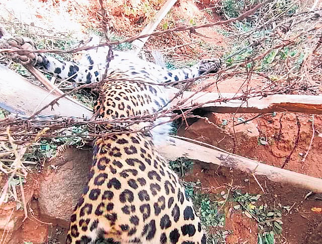 Coimbatore: A two-year-old female leopard was killed after it got trapped in a barbed wire fence at a farmland in Modamathi village, located within 500m of forest boundary.