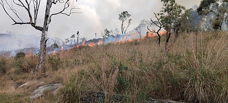 The blaze in Nagalur was reported in the afternoon, following which fire and forest personnel rushed to the spot. Changing wind directions was a significant challenge in bringing the fire under control. Due to this, counter fire method was used, one of the officials noted.