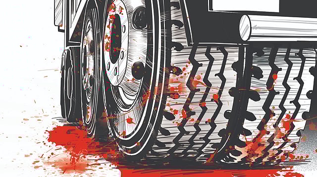 A group of seven devotees from Andipatti Mela Street in Theni district left Andipatti around 9 pm on Thursday after tying the irumudi, proceeding on foot towards the Sabarimala Ayyappa temple in Kerala. When the group reached the Veppampatti junction at Seelayampatti, on the Chinnamanur border, at around 5 am, five devotees were walking ahead while two were following behind.