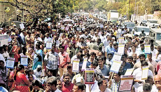 Meanwhile, the Tamil Nadu Revenue Officials Association president, MP Murugaiyan, said the government should transfer the amounts deducted from the salaries of the employees to the General Provident Fund and that the government should guarantee full pension after 20 years of service.