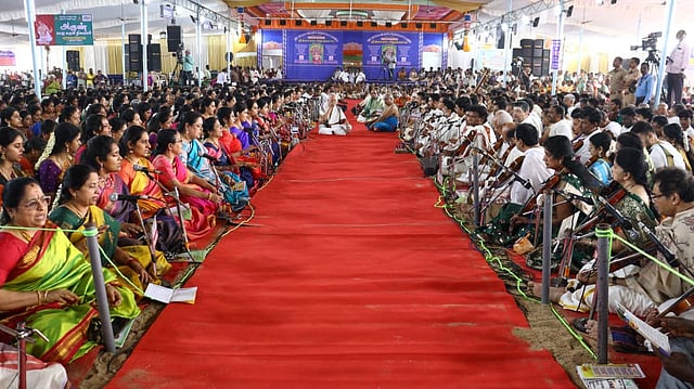 THANJAVUR: Musicians from across the country on Wednesday paid homage to Saint Thiyagaraja, one of the trinity of Carnatic music, at Tiruvaiyaru by rendering the Pancharatna Kritis, the five gems of his compositions, as a grand ensemble.