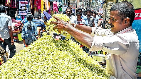According to traders at the Mattuthavani flower market, the prices of several flowers have risen sharply owing to a drastic fall in arrivals. Just a week ago, jasmine was selling at around Rs 2,000 per kg. On Friday morning, prices opened at Rs 6,000 per kg and continued to climb as supplies dried up.