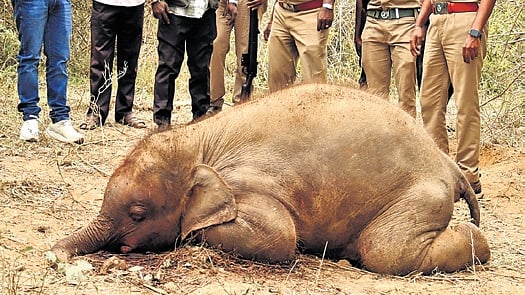 According to forest department officials, on January 10, a team of forest staff from Kadambur range was on routine patrol when they found a bloodied carcass of a female elephant calf near Boothikadu range of Guthiyalathur Reserve Forest.
