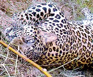 DHARMAPURI: An eight-year-old male leopard was found dead within the Pennagaram reserve forest in the Dharmapuri district on Thursday morning. It is suspected it died of wounds sustained in an attack by a wild elephant.