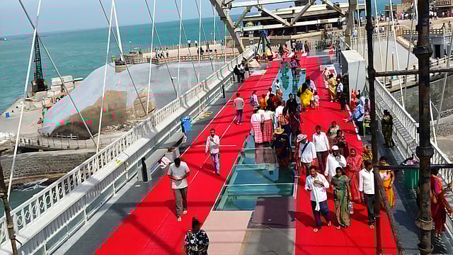 The 77-metre-long and 10-metre-wide glass bridge in Kanniyakumari is the first glass bridge installed over the sea in the country. Chief Minister MK Stalin inaugurated the fibreglass bridge on the silver jubilee of the Tiruvalluvar statue on December 30, 2024. Poompuhar Shipping Corporation sources said that 27,33,290 tourists had used the Kanniyakumari Ferry service boats during 2025 after the construction of the Glass Bridge, while before its construction, only 20,13,211 tourists used the ferry service in 2024.