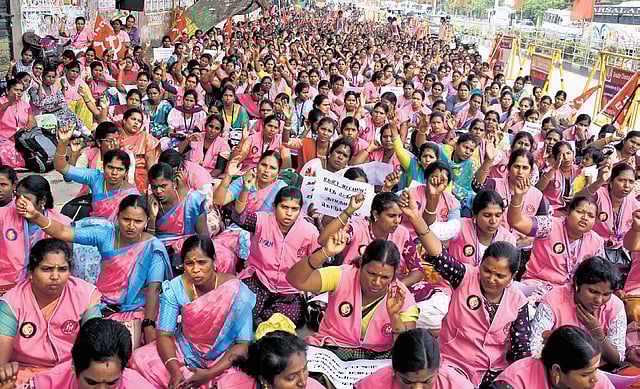 They said, though their working time is officially two hours, they are forced to work the whole day and are even called for duty at PHCs. They demanded that the salary be raised to Rs 15,000 from Rs 5,500 now by allocating funds through the National Health Mission.