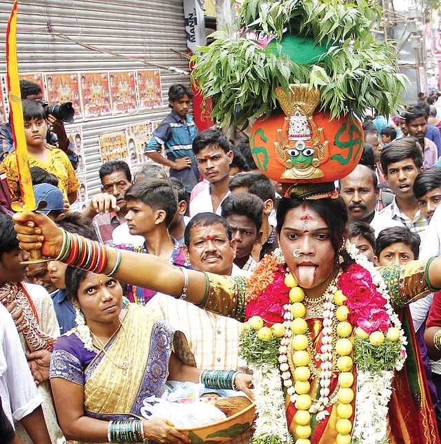 ‘Pothrajus’ and ‘Ghatams’ accompanied by teen maar drumbeats and Telugu folk songs reverberated in various areas of Secunderabad.