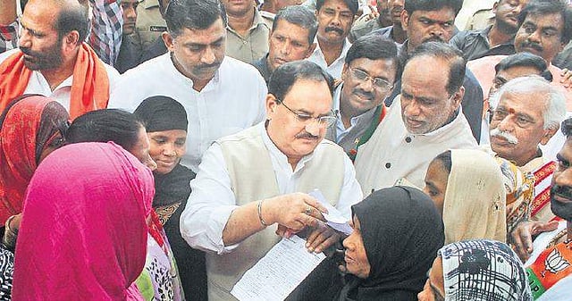 HYDERABAD: As part of their strategy to make conscious efforts to change the perception of the Muslim community towards the saffron party, the BJP is trying to attract people of that community during its membership drive in the State. During one such membership drive organised in EWS Colony of Baghlingampalli area on Monday, BJP working president JP Nadda welcomed around 20 new members, mostly women belonging to the Muslim community, into the party.