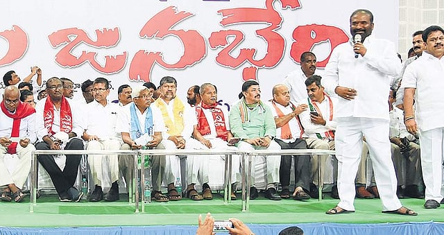 A few TSRTC workers, who have been on strike for the past 26 days, on Wednesday headed to Chinna Jeeyar Swamy’s ashram in Muchintal, and urged him to convince CM K Chandrasekhar Rao to accept the unions’ demands. Chinna Jeeyar is the CM’s spiritual guru and the latter had visited the seer just a few days ago. The employees expressed their grievances to the seer and urged him to intervene in the matter. However, the TSRTC JAC distanced themselves from this meeting. “We do not endorse their choice. They may have gone there as part of personal faith. However, no JAC leader has sought any kind of help from him,” said Thomas Reddy, JAC leader. The workers who went there were reportedly from Rajendra Nagar and Maheshwaram depots