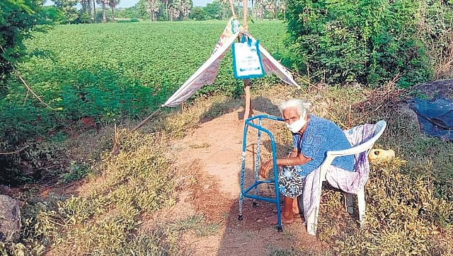 Though all the others in the family, including the children, tested negative, Lachhamma ‘unfortunately’ tested positive. After receiving the report, her fours sons decided not to let her stay in their house. They set up a makeshift tent in their farmland and moved her there.