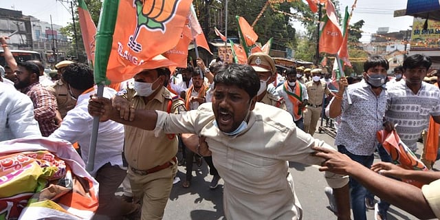 While the Congress cadres held rasta rokos, BJYM Karyakartas attempted to lay siege to district collectorates. In Hyderabad, BJP Yuva Morcha took out a rally from the BJP State office at Nampally to the Hyderabad district collectorate.