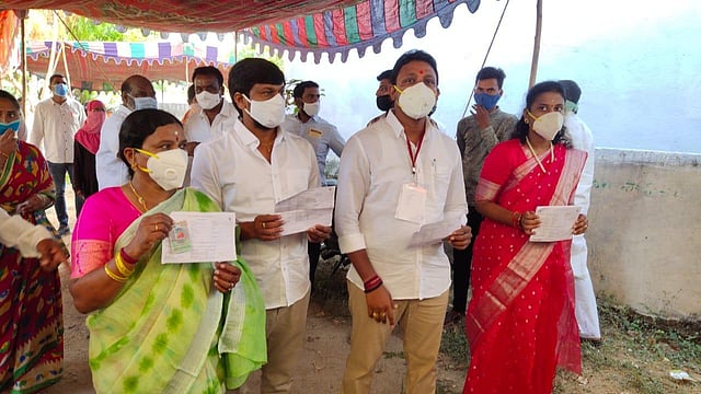 Officials are requesting the voters to strictly follow the Covid-19 guidelines. The polling staff were providing masks and hand sanitizers to voters.