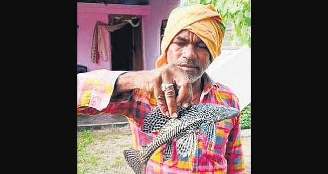 Rajanarsu with the Devil Fish that he caught, at Atmakur village | EPS