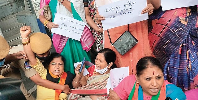 HYDERABAD/KARIMNAGAR: The BJP Mahila Morcha staged a protest near the Assembly demanding to stop the release of the Telugu film Dirty Hari. They alleged that the film degrades women and Indian culture.BJP Mahila Morcha State president Geetha Murthy said the movie was full of obscenities and diminished Indian culture.