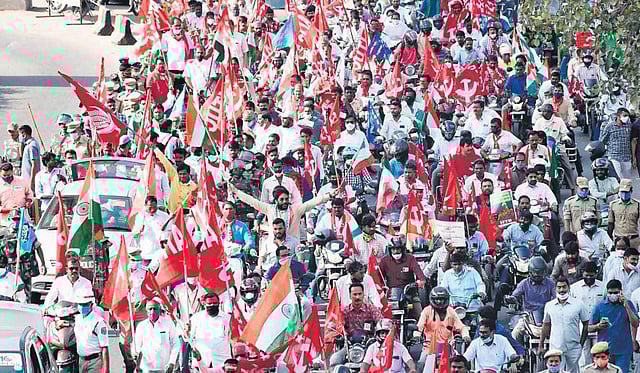 HYDERABAD: To show their solidarity with the tractor rally in Delhi, thousands of farmers from several districts of Telangana took part in a protest rally against the recent farm laws here on Tuesday.
