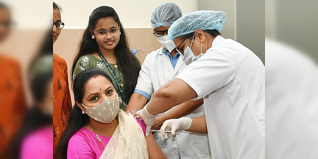 Meanwhile, setting a good example to emulate, several politicians and ministers took the COVID-19 vaccine on Monday. Amongst those who took the vaccine on Monday were MLC K Kavitha. It may be recalled that it was only four days ago that the MLC's husband had tested positive for COVID-19.