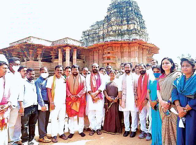 He visited the Ramappa temple in Palampet village and unveiled the world heritage site plaque alongside Telangana Tourism Minister V Srinivas Goud. Speaking to the media, Kishan said that nearly 90 per cent works of the Kalyana Mandapam at the Thousand Pillar temple have been completed, and that the government has taken up lighting works around the temple.