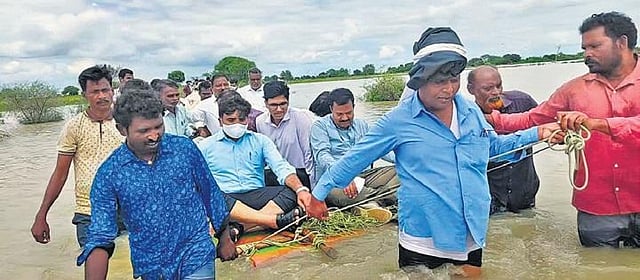 Heavy rains and backwaters of Medigadda and Annaram barrages (KLIS) inundated cotton, paddy and chilli crops in thousands of acres at Mahadevpur, Kataram, Malhar Rao and Palimela mandals in Bhupalapally district. Reportedly, Suraram, Annaram, Ambatipally, Chandrupally, Palugula, Maddulapalli and Kuntlamu villages in Mahadevpur were the worst-hit areas.