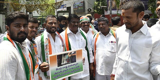 Responding to his call, Congress leaders and activists, holding placards and shouting slogans against the government, took out rallies and also held sit-in protests in front of Collectorates. Besides Hyderabad, demonstrations were also staged in Suryapet, Karimnagar, Warangal, Gadwal, Jangaon and other places.