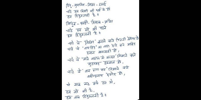 Kavitha, also a former MP from Nizamabad, in her poem speaks strongly about how despite the actions of divisive forces, “we are all one - we are Indians”. She said that the choice of lifestyle and clothing are personal choices. She further added that the idea of India and Indian cannot be evaluated with the notion of how a certain section of society expects women and religions to behave.
