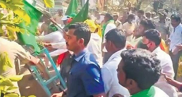 When Superintendent of Police (SP) D Uday Kumar Reddy tried to pacify the protesters, they blocked the road and raised slogans demanding the withdrawal of the resolution and distribution of patta (land deeds) for Podu farmers.