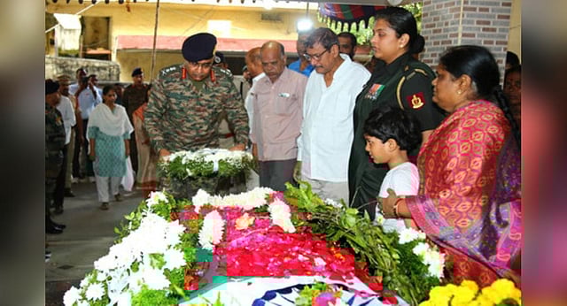 HYDERABAD / NALGONDA: Rich tributes were on Saturday paid to Lt. Col. VVB Reddy, who was killed in a helicopter crash while on an operational sortie at Mandala in Arunachal Pradesh earlier this week. Chief of the Army Staff General Manoj Pande paid homage to the late officer by visiting his residence at Malkajgiri in Hyderabad. Later, Lieutenant General Ajai Kumar Singh, the General Officer-Commanding-in-Chief (GOC-in-C) Southern Command, paid floral tributes to Lt Colonel VVB Reddy. Both the officers expressed their condolences to the grieving family.