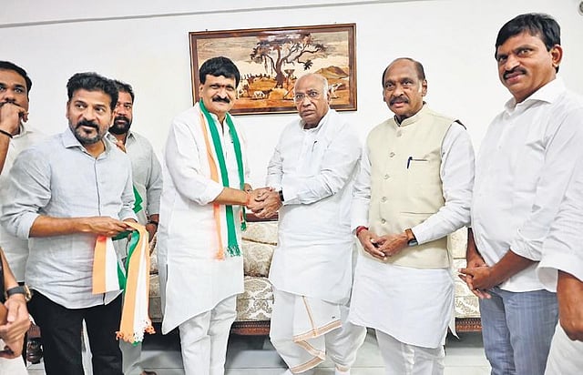 Former BRS MLA Vemula Veeresham was also welcomed into the grand old party by Kharge. Speculations are rife that the Congress is likely to give a ticket to Veeresham from Nakrekal Assembly segment. Understandably, the Congress will be giving Malkajgiri Assembly segment to Hanumantha Rao, and Medak to Rohit.