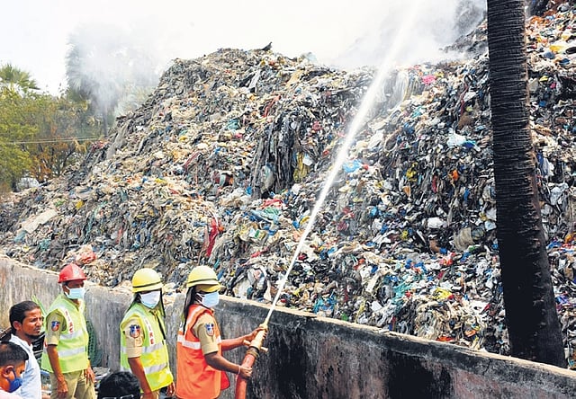 When a fire erupted in the garbage heaps, fire tenders rushed to the spot and extinguished the flames. However, the smoke persisted. Residents allege due to the apathy of the Municipal Corporation officials, this has become a recurring issue every summer season.