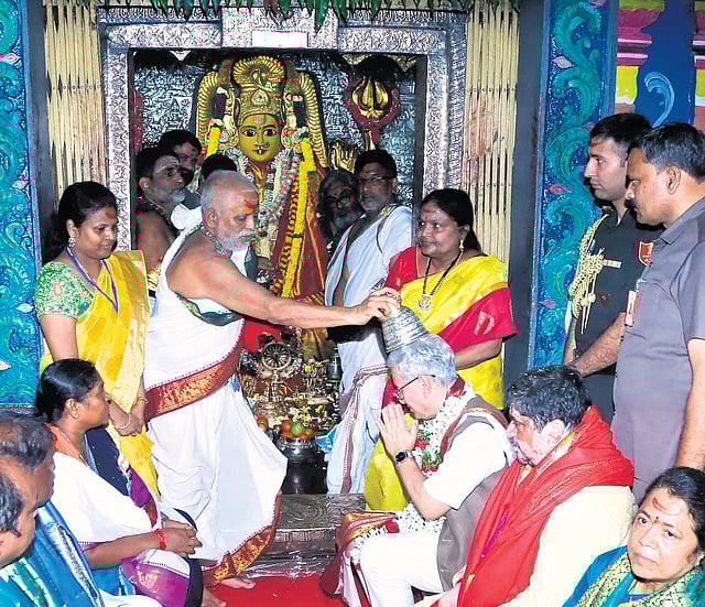 The Governor interacted with Warangal Collector Satya Sharada, her Hanamkonda counterpart P Pravinya and Warangal Commissioner of Police Ambar Kishor Jha, prominent writers, artists, eminent personalities, and various national and state-level awardees at the Hanamkonda collectorate.