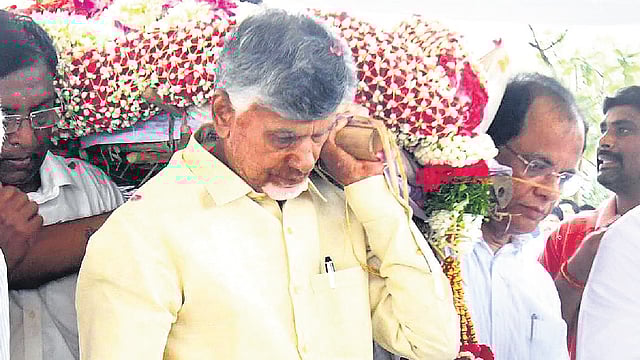 HYDERABAD: The last rites of Cherukuri Ramoji Rao, chairman of the Ramoji Group, were performed with state honours on Sunday at the Smiriti Vanam, constructed at Ramoji Film City. Andhra Pradesh Chief Minister-designate and TDP president N Chandrababu Naidu lent his shoulder to the bier carrying the mortal remains of Ramoji Rao.