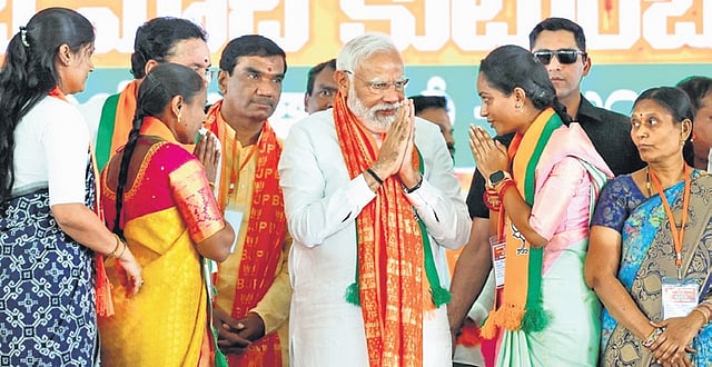 HYDERABAD: Alleging that the INDIA bloc’s manifesto states that its fight is against ‘Shakti’, Prime Minister Narendra Modi on Monday said that the coming General Elections is a fight between people who want to destroy Shakti and the people who worship it.