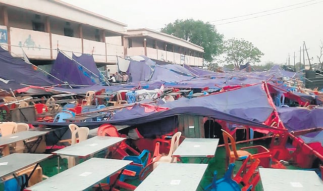 ADILABAD: Heavy rains and hailstorms in the Kumurambheem Asifabad district caused several trees to uproot and temporary culverts to wash away, leading to a havoc at DRC centres where tents collapsed and the entire premises was flooded with rainwater.