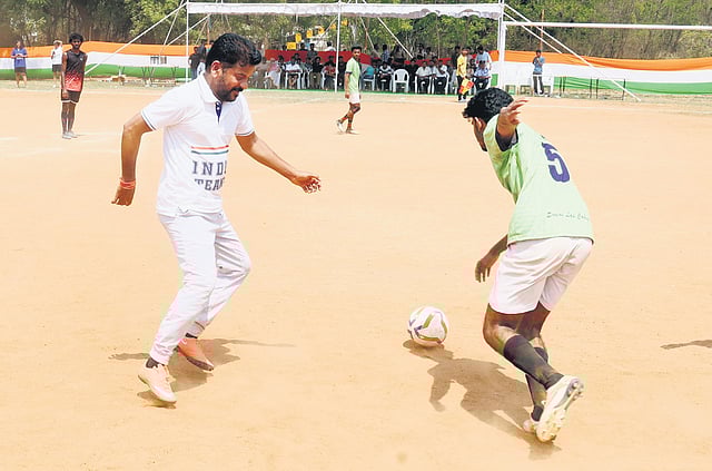 It was a delightful sight for many as the chief minister took to the football field for close to two hours under the scorching sun, making right moves like a professional player. Donning jersey No 9 bearing his name, Revanth was seen running and dribbling the ball to the best of his ability before passing it to students and his party colleagues, like a perfect team player, during the match.