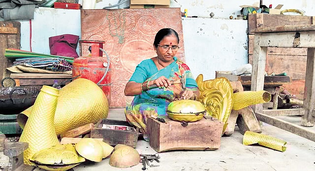 K Annapurna, a brass and copper engraving artisan, told TNIE that artisans from Pembarthy, once celebrated for their skill during the Kakatiya and Nizam eras, have seen their craft diminish after the formation of Telangana. “We hoped for better support after the state’s formation, but instead, we lost the little support we had. A training centre in the village would not only preserve our heritage but also provide opportunities for the younger generation to learn this craft,” she said.