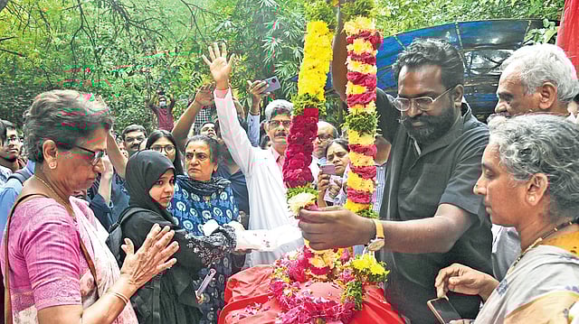 Speaking to TNIE, Forum Against Repression convenor K Ravichander said that the police didn’t allow stating that no bodies were allowed inside the martyrs memorial. He said that they wanted to pay tributes to Saibaba given the latter’s contribution to the Telangana movement.