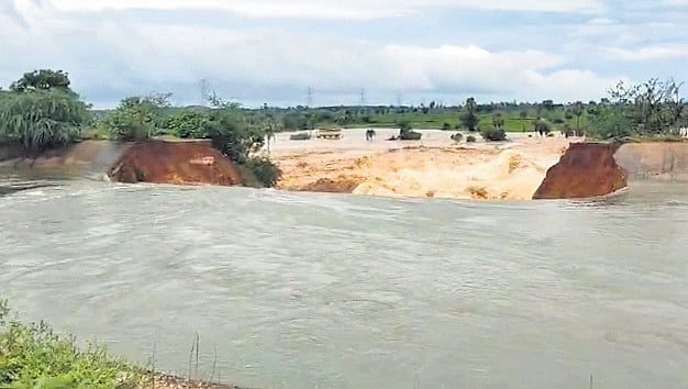 At Nadigudem in Suryapet district, the left canal of the Nagarjunasagar breached, resulting in flooding of approximately 300 acres of crops. The NSP left canal also breached at Mallaigudem village in Kusumanchi mandal, Khammam district.
