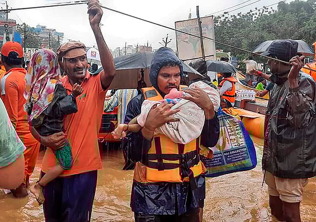 Scores of people in flood-ravaged Vijayawada scrambled for milk and food packets on Monday, voicing frustration over the government’s alleged apathy during the past three days of torrential downpours, reported PTI. Multiple localities in the city, including Ajit Singh Nagar, Madhura Nagar, and others, have been submerged.