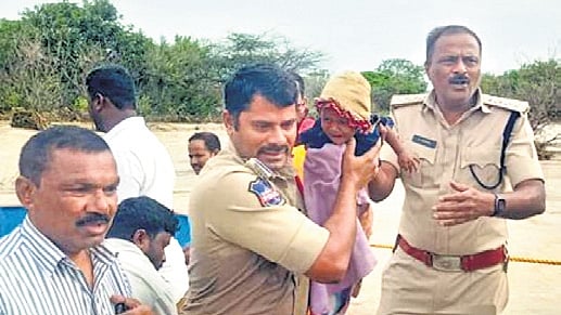 Finally, a rope was used by Nagarkurnool police and firefighters from Achampeta to bring them to a safe location. DGP Dr Jitender publicly commended the officers for their efficiency and dedication.